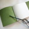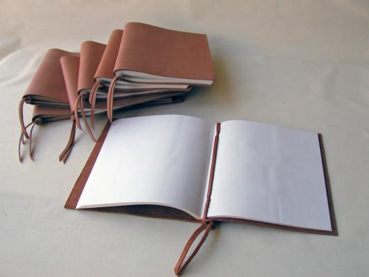 Rindsleder, ohne Klebstoff mit Lederband gebunden